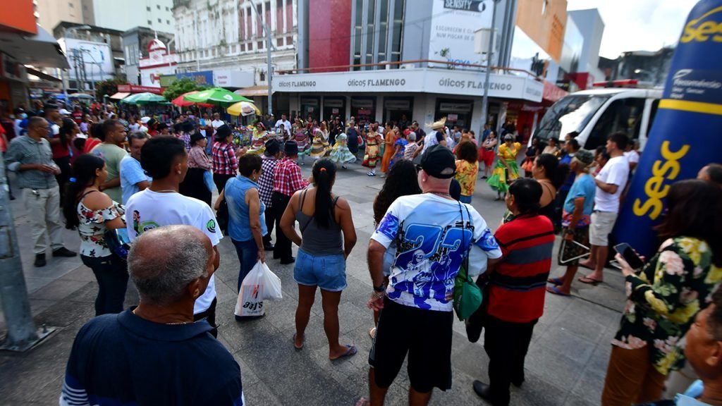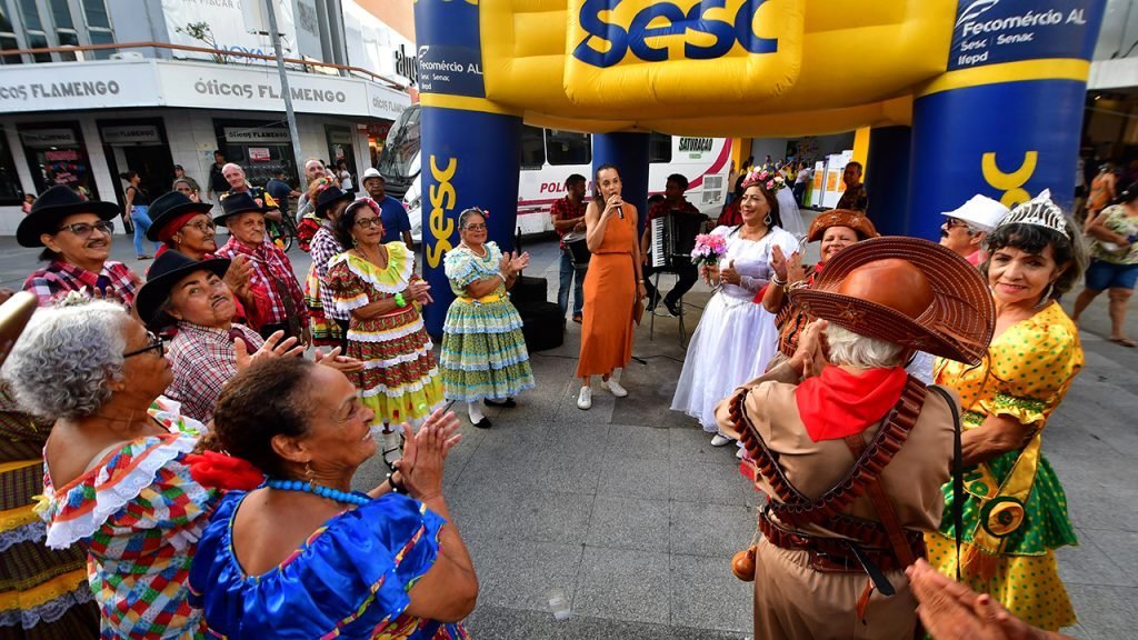 A Aliança Comercial de Maceió e o Serviço Social do Comércio (SESC) promoveram, nesta segunda-feira (12), evento junino no Largo das Brasileiras, no Centro de Maceió. A quadrilha, composta por pessoas da terceira idade, associadas às atividades do SESC, apresentou-se no calçadão do comércio. A iniciativa segue nos dias 23 e 27 de junho, sempre às 16h.