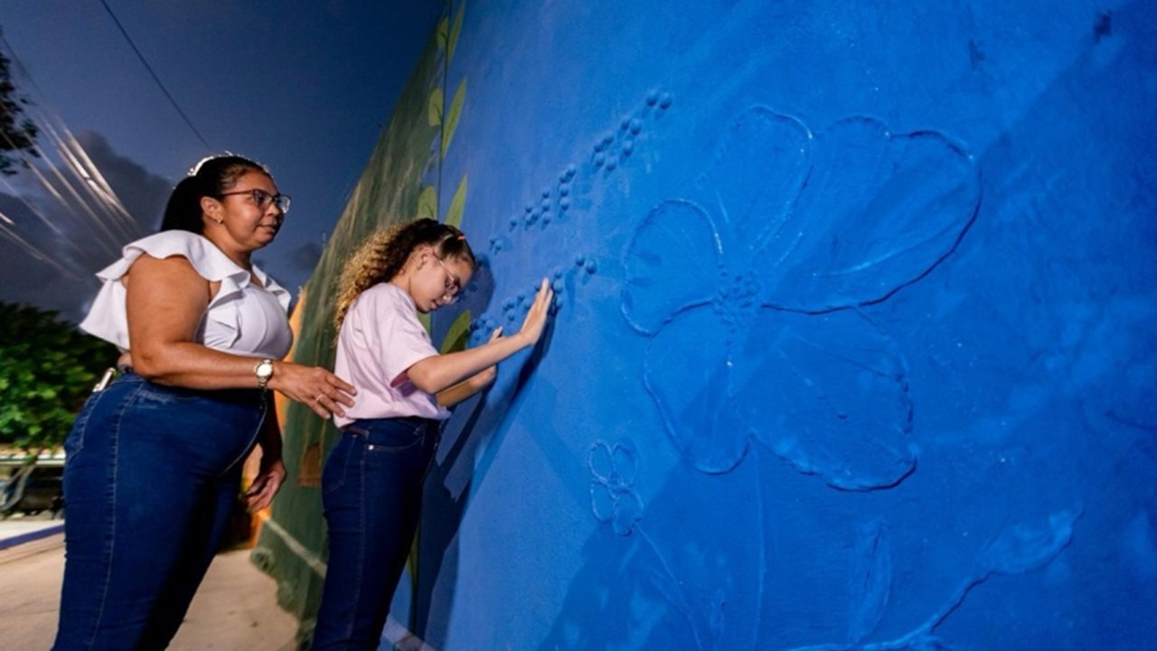 A pintura sensorial criada pelos artistas alagoanos, Rapha Lins e Yrlan Lins, foi inspirada na história de Mika, uma menina de 11 anos, moradora do bairro, com deficiência visual. Os artistas desenvolveram uma obra que pode ser sentida com as mãos. O trabalho tem camadas em relevo e a frase “Arte é amor que se sente” em braille, um sistema de escrita tátil, utilizado por pessoas cegas ou com baixa visão.